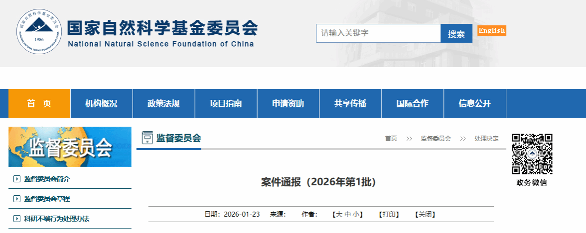 国家自然科学基金委员会将持续对科学基金项目申请、评审、执行及成果发表过程中发生的科研不端行为进行严肃处理,请广大科技人员自觉践行新时代科学家精神,坚持良好的学风作风,恪守科学道德准则;请各依托单位自觉履行依托单位主体责任,加强科研诚信建设,共同构建良好的学术生态。